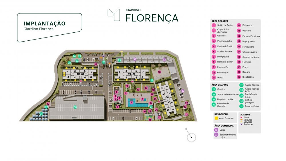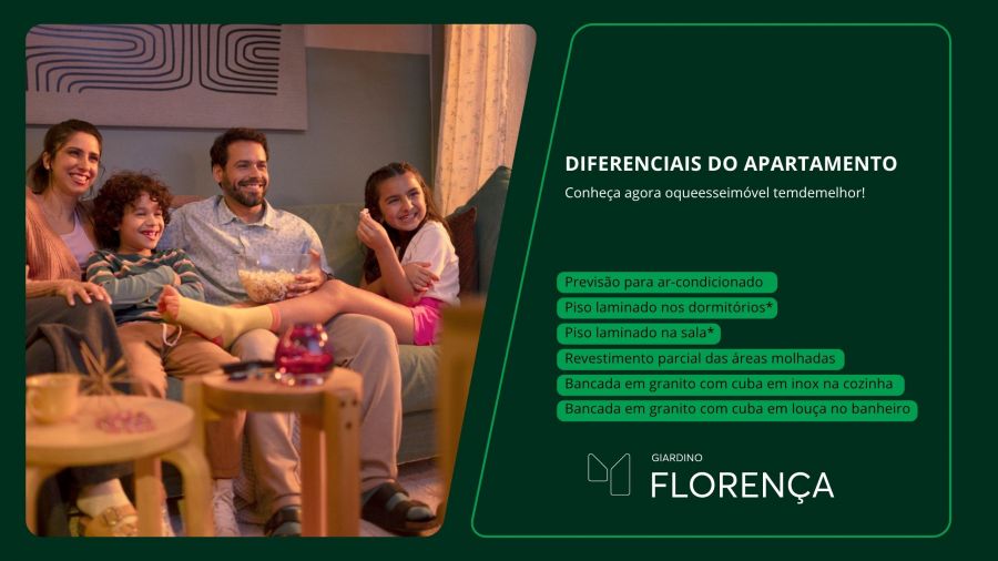 Além disso, o empreendimento conta com um centro comercial exclusivo dentro do espaço do condomínio, composto por 10 lojas que vão oferecer ainda mais comodidade e facilidade no dia a dia para os moradores do Giardino Florença.